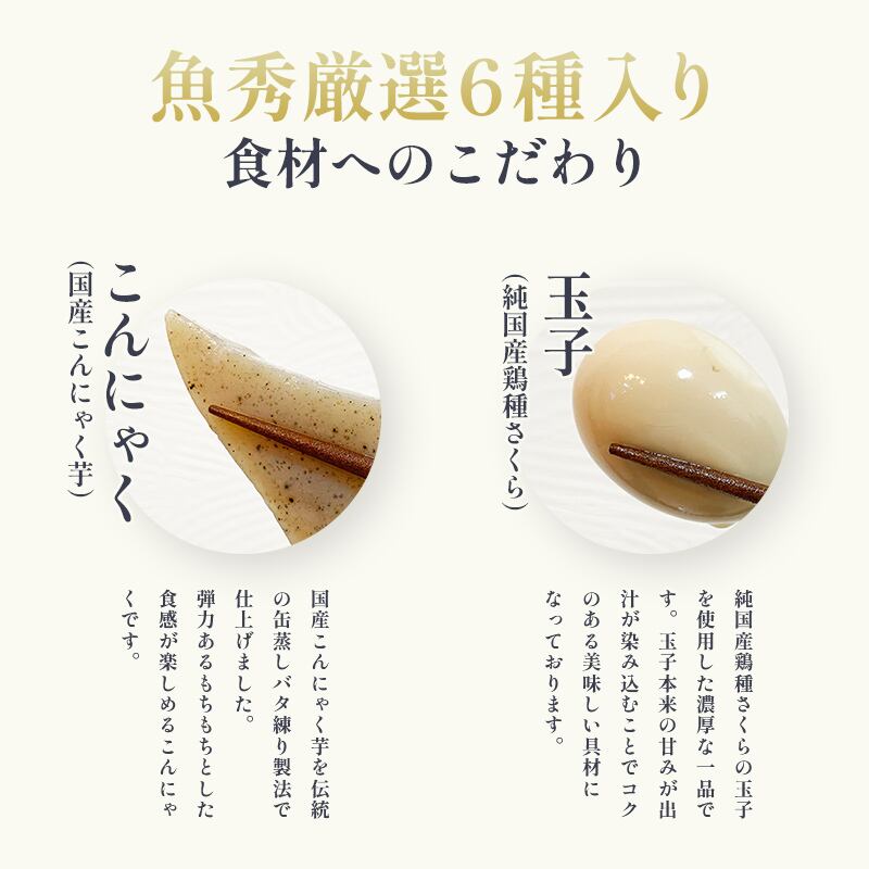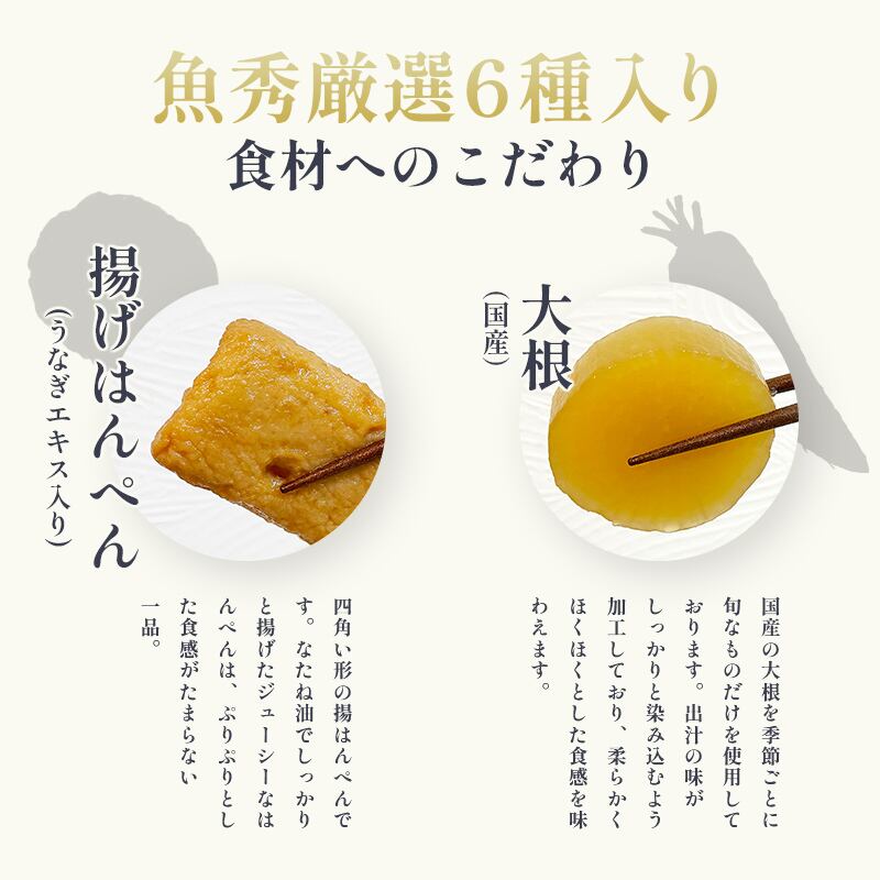 白はんぺん、うなぎ巻、あげはん、大根、卵、こんにゃく 1袋 各1個
