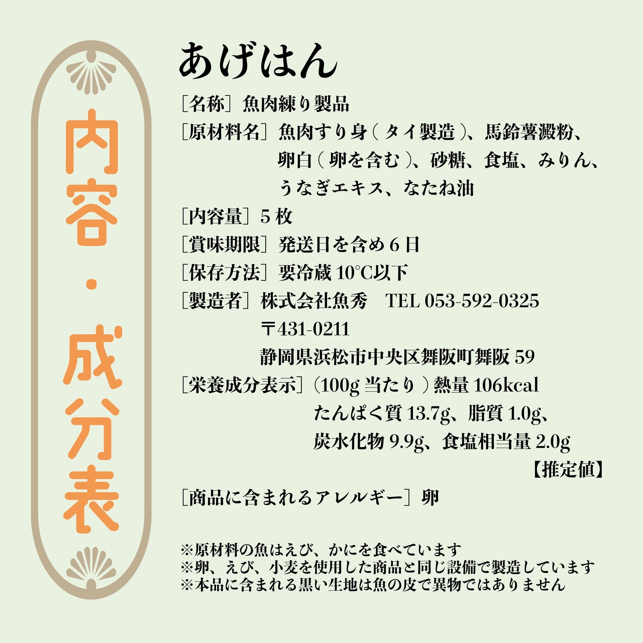 - 本品にみられる黒い生地は魚の皮で、異物ではありません